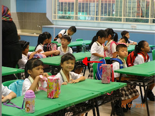 Happy 2014! The 2nd day of January dawn bright & early for these 2 as they prepared themselves for their 1st day of school. I was in school at 0730hrs & went back home only at 1015hrs. Parents were asked to wait at the school canteen while the teachers took attendance & got the pupils ready for their walk to the classroom. Hey, I think as parents, we were more anxious than our children. We were not allowed to be "loitering" around the classrooms but......