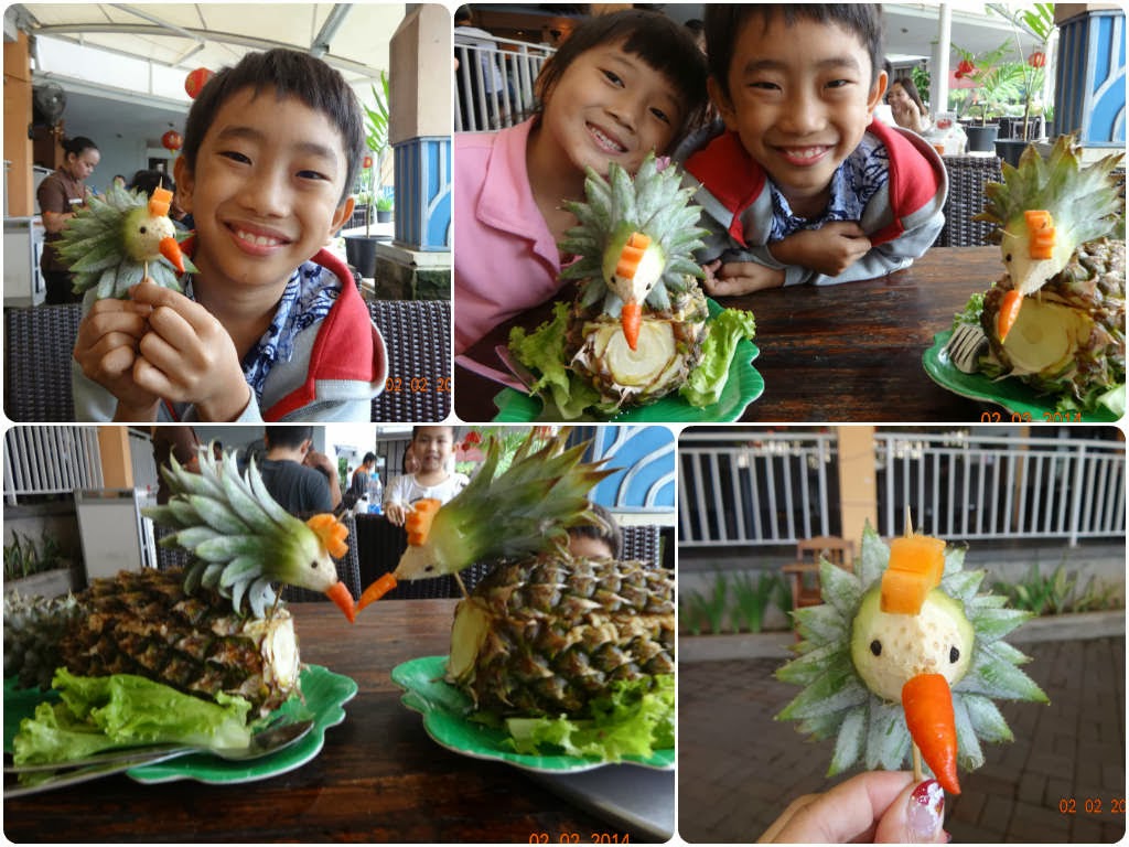 We stopped for lunch at Seaside Suki. As it was a weekend, the place was real crowded. We made our orders but forgot to inform the service staff we want non spicy ones. As it is, even the pineapple rice you see above was spicy. Hubs ordered some desserts for the kids - Singkong Thailand S2 & Lumpia Durian (if I remembered correctly). We paid 275,880 rupiah.